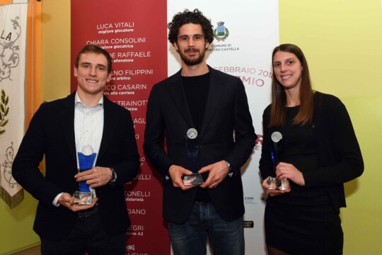 E anche quest’anno, oltre al nostro Deg, i premiati sono stati una volta di più personaggi di spicco della nostra pallacanestro, a partire dal playmaker della Nazionale e della Leonessa Brescia Luca Vitali (miglior giocatore), per poi passare al capo allenatore della Reyer Venezia Walter De Raffaele (miglior allenatore), al fischietto Massimiliano Filippini (miglior arbitro), al general manager dell’Aquila Basket Trento Salvatore Trainotti (personaggio dell’anno), al Presidente della Reyer Venezia Federico Casarin (premio alla carriera), alla Presidente della Leonessa Brescia Graziella Bragaglio (premio contributo al basket) al telecronista Rai Edi Dembinski (miglior giornalista) e alla cestista di Ragusa Chiara Consolini (miglior giocatrice). Oltre ai premi tradizionali, sono stati celebrati anche Pietro Bernardelli, Presidente del gruppo industriale Grissin Bon (premio speciale), Pietro Basciano (premio FIP), Massimo Antonelli (premio basket e solidarietà, per il progetto Tam Tam) e il gruppo Go Iwons – I Giullari del Castello (premio “Giacomo Piccinini”).